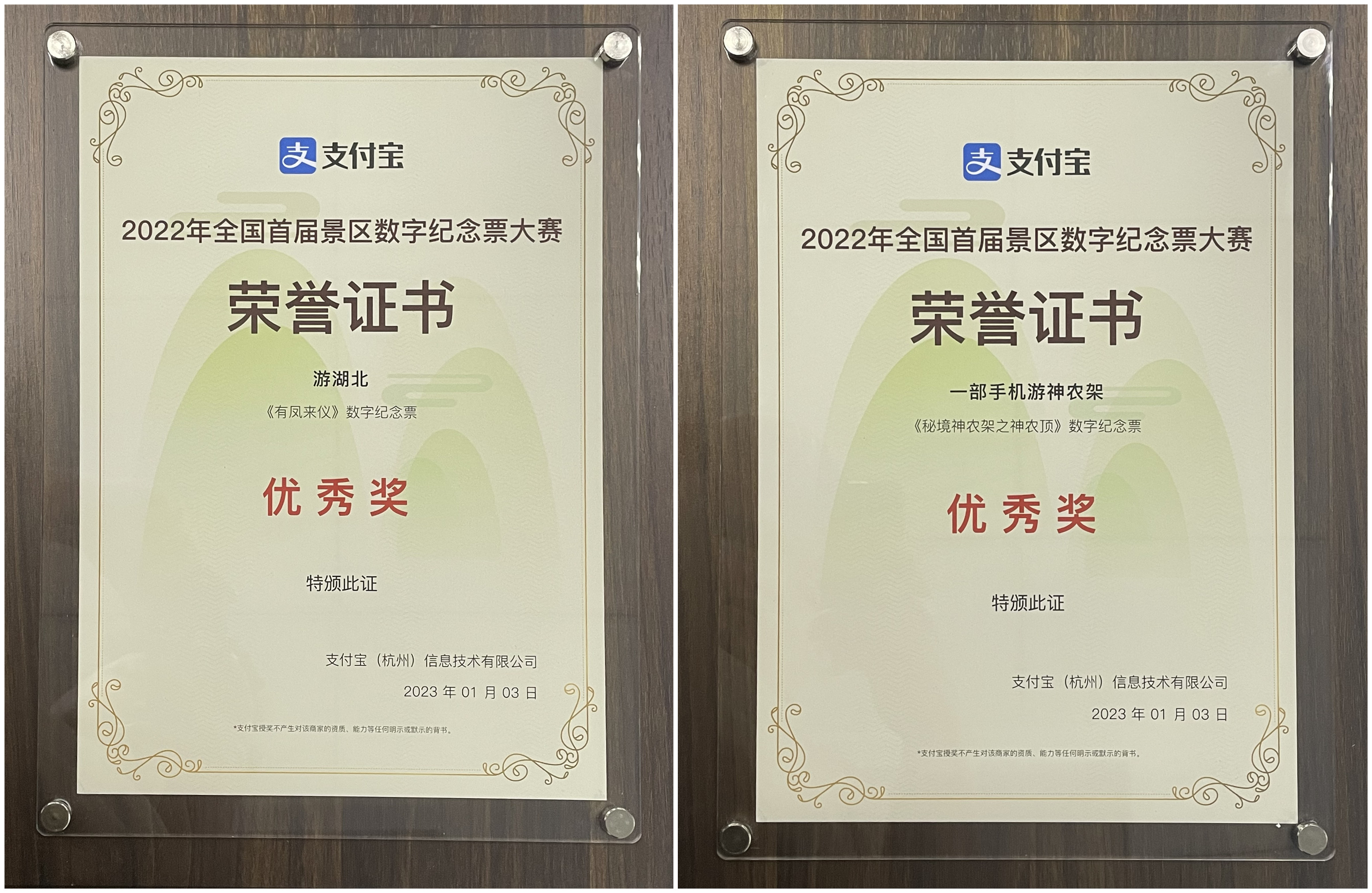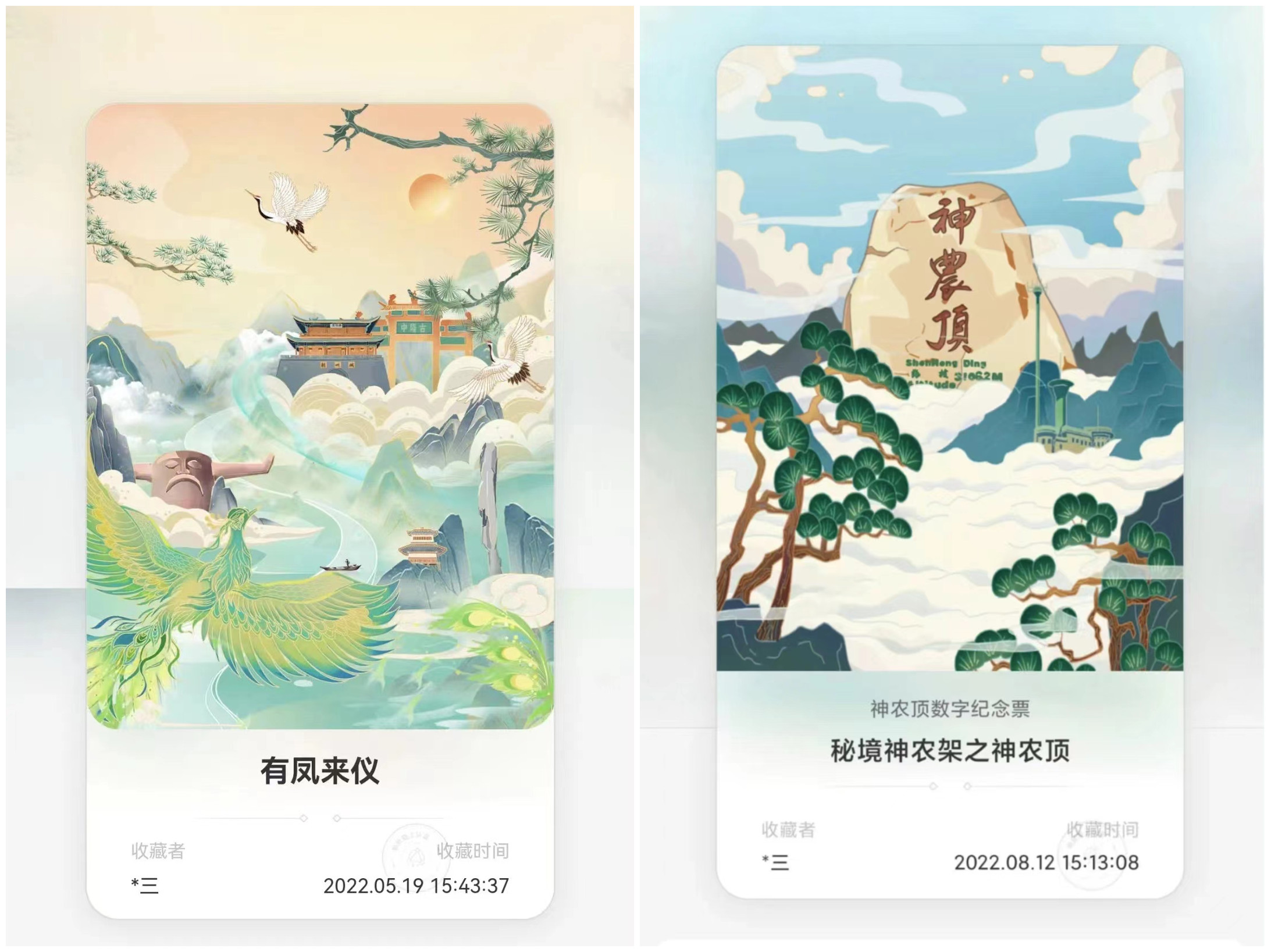 近日,由“游湖北”平臺創(chuàng)作的“有鳳來儀”及“秘境神農(nóng)架”系列數(shù)字紀(jì)念票獲2022全國景區(qū)首屆數(shù)字文創(chuàng)紀(jì)念票大賽“優(yōu)秀獎”。