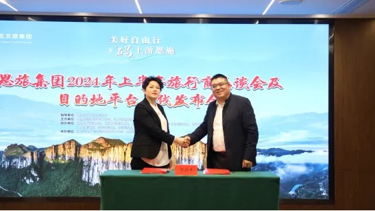 發(fā)布會上,恩旅集團營銷公司向與會領(lǐng)導(dǎo)和嘉賓介紹了恩施旅游目的地平臺建設(shè)背景、相關(guān)功能和操作模式等。巴楚國旅、歡硒俠國旅、想游國旅、華美達酒店等旅行商及酒店代表與恩旅集團營銷公司簽訂了平臺銷售合作協(xié)議。