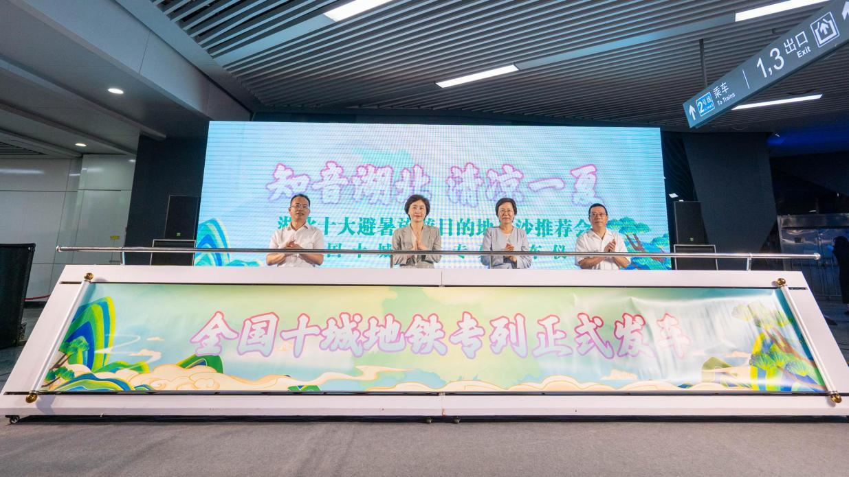 湖北文旅“知音號(hào)”地鐵專列全國十城同發(fā)。7月16日,由湖北省文化和旅游廳聯(lián)手中南地鐵傳媒發(fā)起的“知音湖北 清涼一夏”湖北十大避暑旅游目的地推介暨湖北文旅“知音號(hào)”地鐵專列全國十城首發(fā)活動(dòng),在長沙地鐵溁灣鎮(zhèn)站舉行。本次活動(dòng),重磅宣布了湖北文旅“知音號(hào)”地鐵主題列車,在北京、上海、杭州、深圳、南京、青島、長沙、廣州、南昌、南寧、合肥等全國十城集結(jié)同發(fā)。