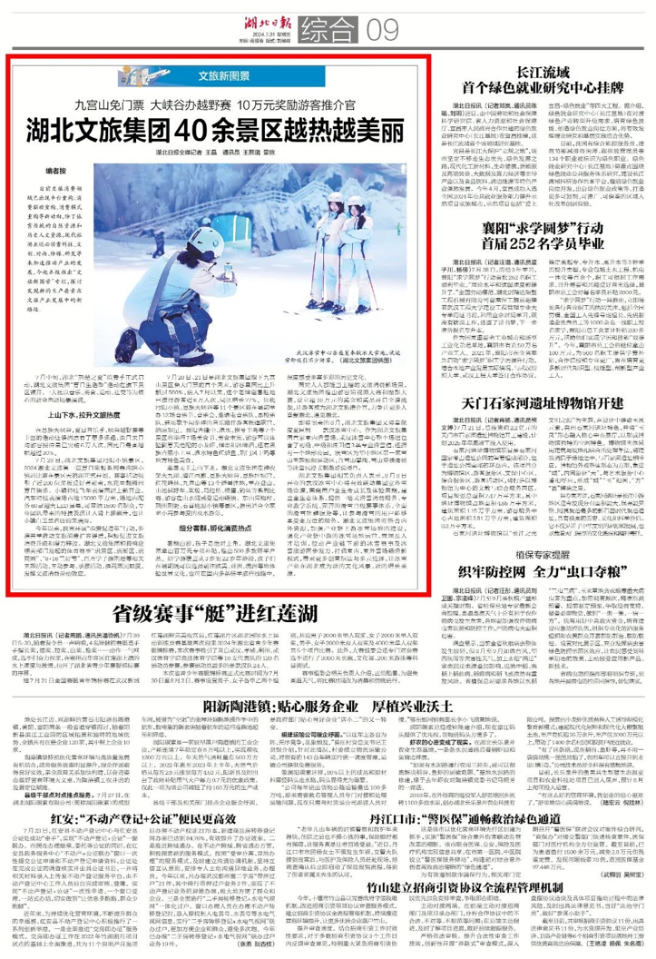 湖北文旅集團40余景區(qū)越熱越美麗。7月中旬,湖北“荊楚之夏”消費季正式啟動,湖北文旅集團“夏日生活季”活動在旗下景區(qū)鋪開,一大批以音樂、美食、運動、社交等為核心的新業(yè)態(tài)新場景涌現;積極響應相關部門發(fā)起的體育賽事“進景區(qū)、進街區(qū)、進商圈”、“6·16三好節(jié)”、百萬學子游荊楚等相關主題活動,拿出百萬元專項補貼,推出了500多款研學產品,集團首家室內滑雪場,武漢冰雪中心整個場館包含了初級、中級和練習道3條專業(yè)滑雪道,還擁有一個地形公園。娛雪區(qū)為華中地區(qū)第一家雪山主題極限運動區(qū),含雪山攀、雪山穿梭滑梯等冰雪沉浸式刺激游玩項目,發(fā)揮文旅消費帶動效應。