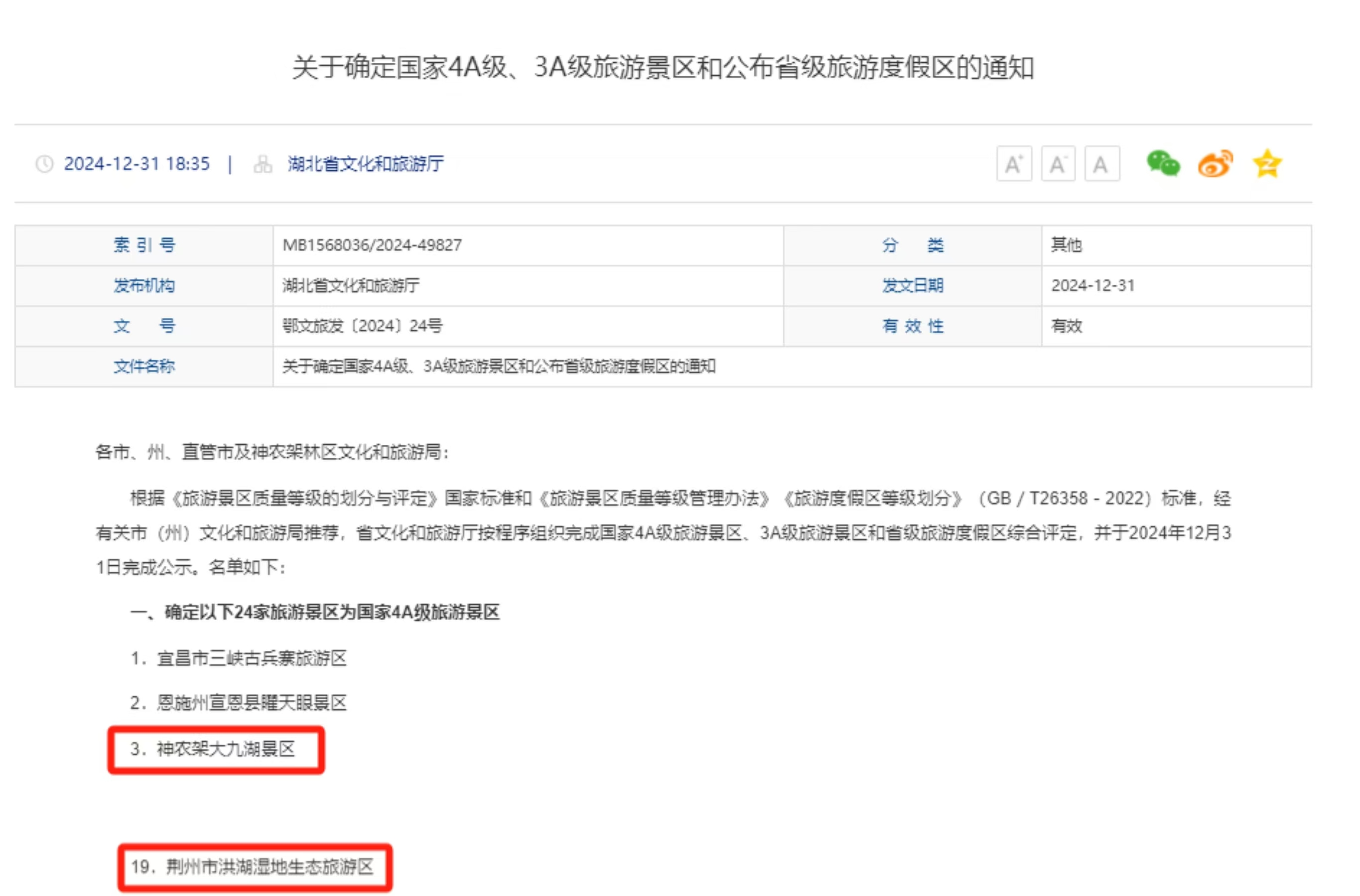 湖北文旅集團新增兩家國家4A級旅游景區(qū)。近日,湖北省文化和旅游廳發(fā)布公告,經湖北省旅游景區(qū)質量等級評定委員會組織評定,集團旗下神農架大九湖景區(qū)、荊州市洪湖濕地生態(tài)旅游區(qū)獲評“國家4A級旅游景區(qū)”。圍繞4A創(chuàng)建,神農架大九湖景區(qū)堅持生態(tài)科技賦能,堅持升級科普游覽,堅持優(yōu)化服務管理,塑造突出的生態(tài)旅游品牌形象。洪湖濕地生態(tài)旅游區(qū)對標國內一流旅游景區(qū),從硬件提檔、軟件提質、服務提升三方面著力,景區(qū)面貌煥然一新。
