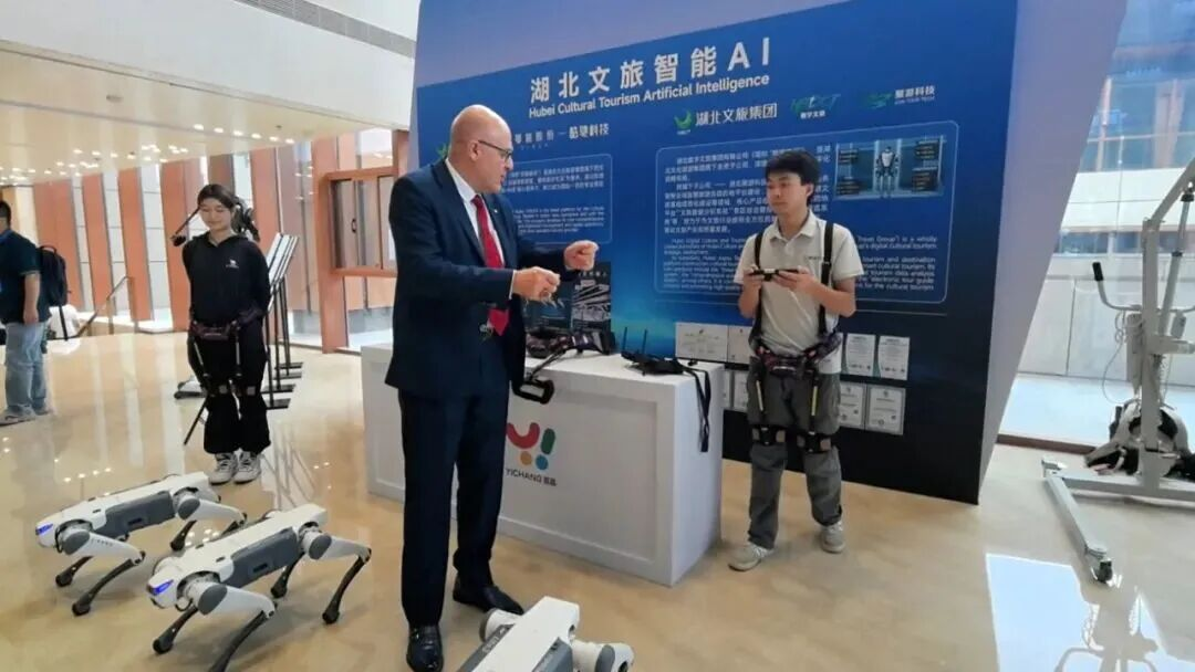 全球旅行商大會宜昌啟幕,湖北文旅集團展示“文旅+科技”新體驗。9月6日,以“知音湖北 大美長江”為主題的知音湖北?2025全球旅行商大會暨宜昌市文化旅游發(fā)展大會在湖北宜昌召開,本次大會由湖北省文化和旅游廳、宜昌市人民政府聯(lián)合主辦。來自40多個國家和地區(qū)的旅行商及各界代表共600余人齊聚長江之畔,以“知音”為紐帶共話合作,以行動助力“引客入鄂”戰(zhàn)略,現(xiàn)場多項文旅合作項目集中簽約,為湖北文旅國際化發(fā)展注入強勁動力。湖北文旅集團攜多款智能設(shè)備終端亮相大會,其中外骨骼機器人和機器狗成為全場焦點,吸引了眾多國際嘉賓駐足體驗。