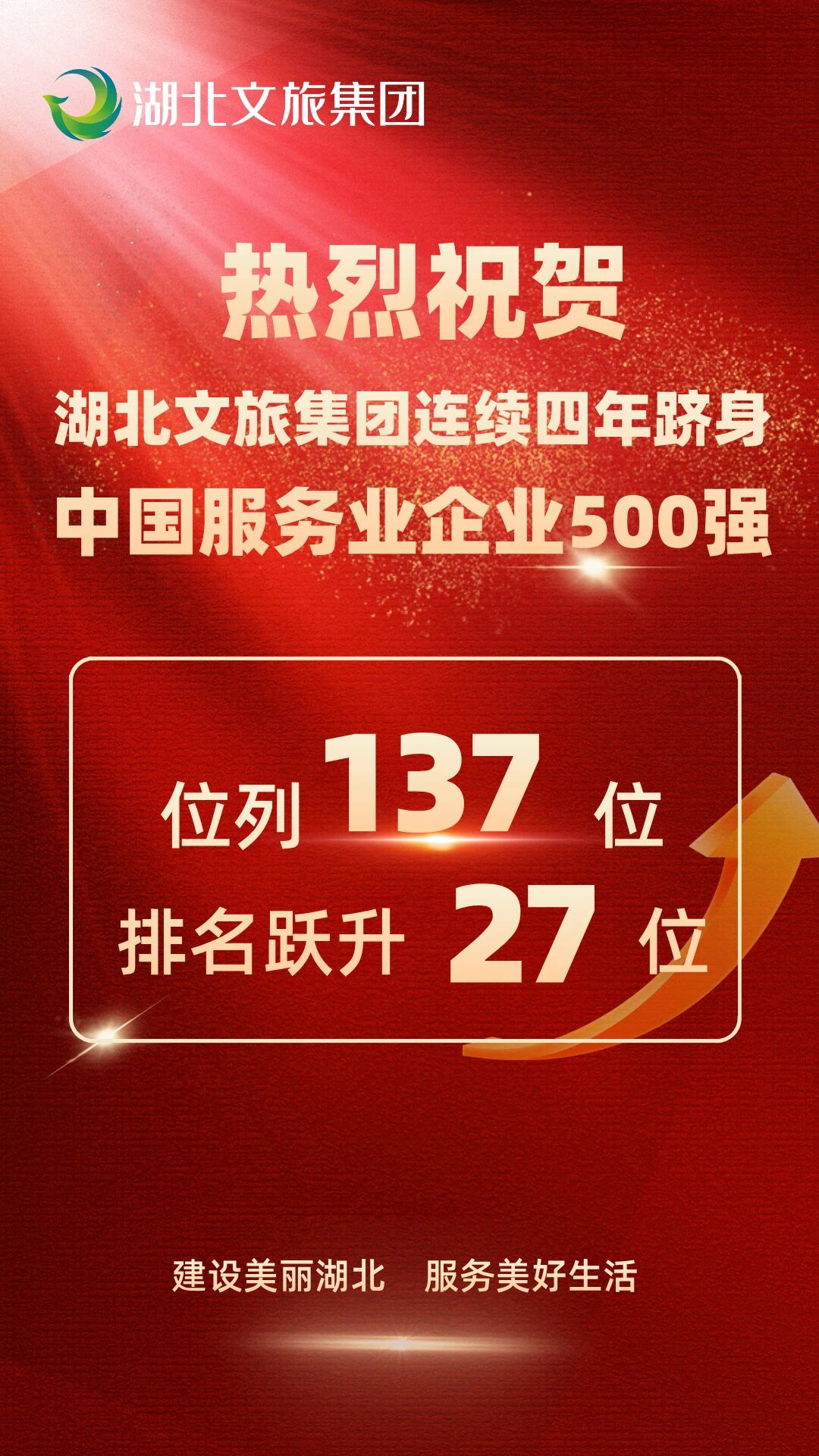 湖北文旅集團(tuán)再上榜中國(guó)服務(wù)業(yè)企業(yè)500強(qiáng),排名第137位。9月18日,中國(guó)企業(yè)聯(lián)合會(huì)、中國(guó)企業(yè)家協(xié)會(huì)在重慶發(fā)布“2025中國(guó)服務(wù)業(yè)企業(yè)500強(qiáng)”榜單。湖北文旅集團(tuán)憑借2024年604.80億元的營(yíng)業(yè)收入,再度躋身榜單,實(shí)現(xiàn)連續(xù)四年上榜,排名第137位,較2024年躍升27個(gè)位次。近年來(lái),集團(tuán)聚焦“四化轉(zhuǎn)型”,系統(tǒng)推進(jìn)“穩(wěn)增長(zhǎng)、調(diào)結(jié)構(gòu)、新產(chǎn)品、盤存量”四大行動(dòng),加速構(gòu)建主業(yè)突出、鏈條完整、效能卓越的文旅現(xiàn)代產(chǎn)業(yè)體系,為湖北建設(shè)世界知名文化旅游目的地貢獻(xiàn)力量。
