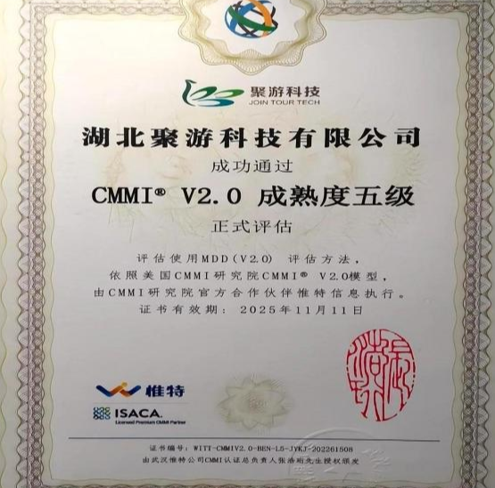 智旅動(dòng)態(tài)周報(bào) 第116期 | 聚游科技獲軟件領(lǐng)域最高級(jí)別CMMI-5級(jí)能力認(rèn)證